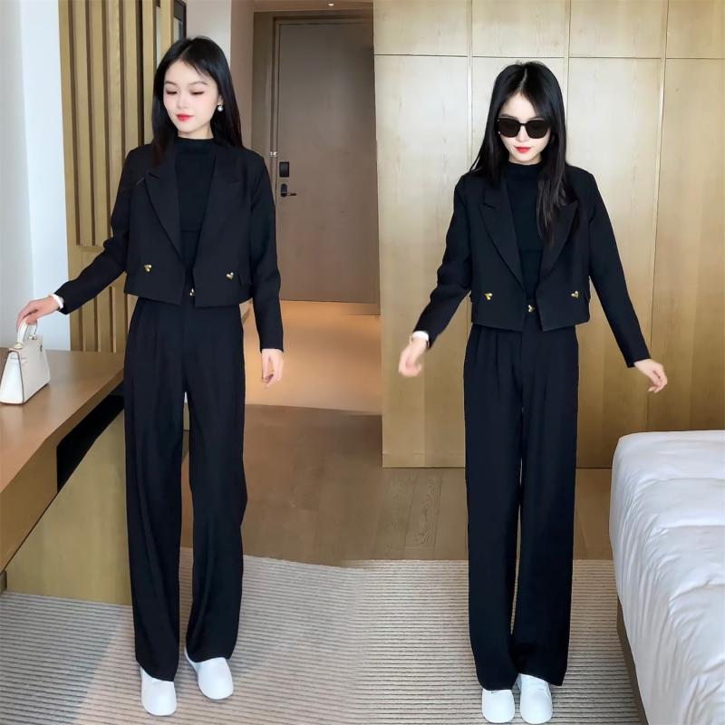 TWO-PIECE SET DESIGN: This suit set includes a loose-fit short top and long wide-leg pants, creating a fashionable silhouette that flatters different body types. The short top offers a relaxed and comfortable fit, while the long wide-leg pants exude sophistication and provide freedom of movement.