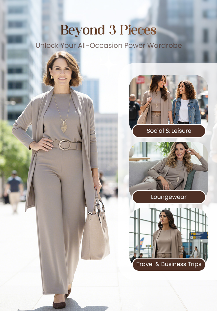 Three-Piece Style, Endless Possibilities! Redefine effortless elegance with this versatile set. Soft, breathable fabric for comfort all day