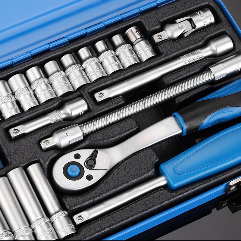 This kit is made of high-quality Chrome-vanadium steel material, making it extremely durable and able to withstand high torque. The set includes a variety of sockets in multiple sizes, so you can tackle any screw with ease, such as bolts, nuts, and screws. The ratchet handle is designed for maximum comfort and efficiency, allowing you to easily switch between different sockets.