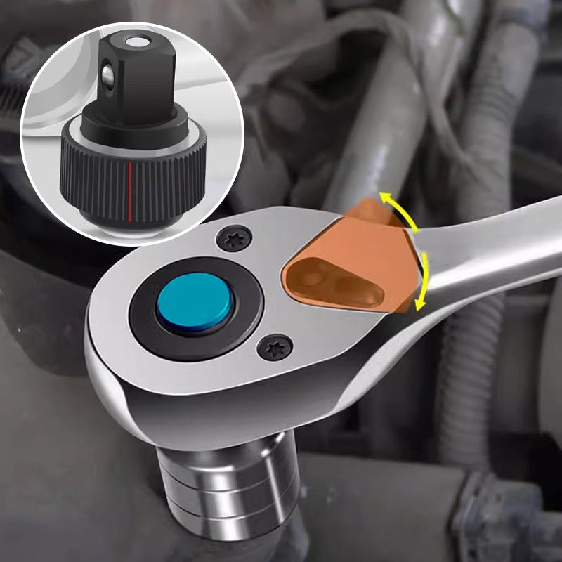 * [Reversible Ratchet]: This 72-teeth ratcheting wrench is designed as a push button ball-bearing quick-release mechanism for easy socket changing, the reverse switch that improves efficiency and performance. The ratchet needs only a 5-degree swing arc.