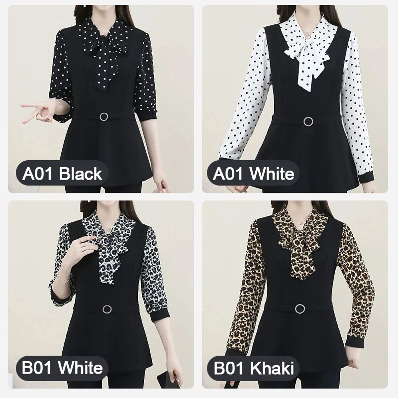 - Package Includes: 1 * Women’s Fashionable Age-reducing Long-sleeve Blouse Fake 2-piece