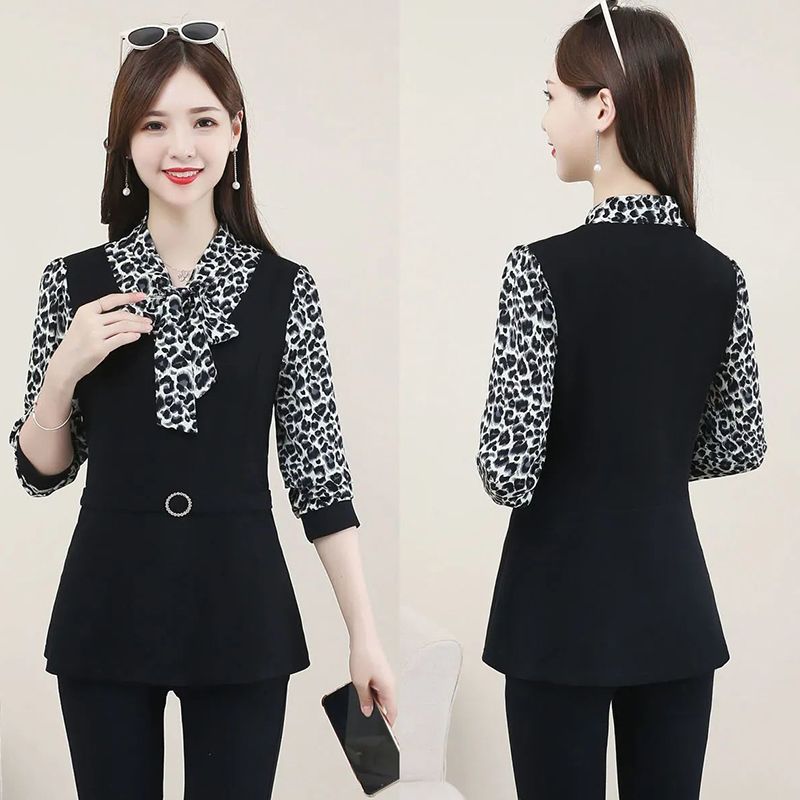 It features the illusion of a 2-piece ensemble, effortlessly elevating your outfit while providing ultimate comfort. Whether you're heading to the office, a special event, or a casual gathering, this blouse is your go-to choice for an age-reducing, fashionable appearance.