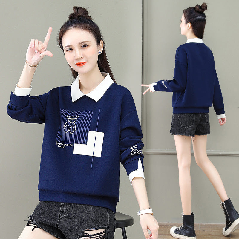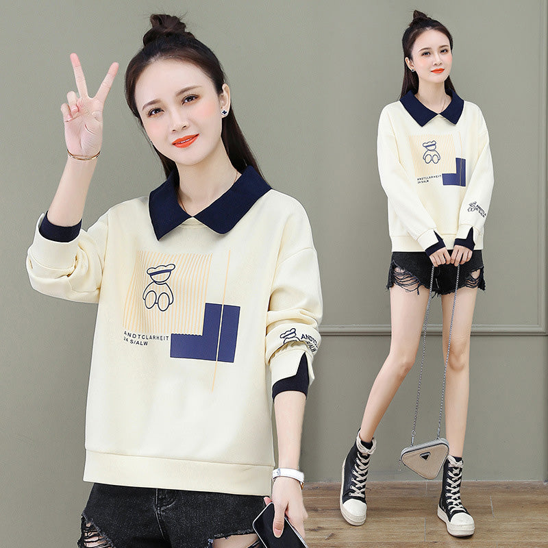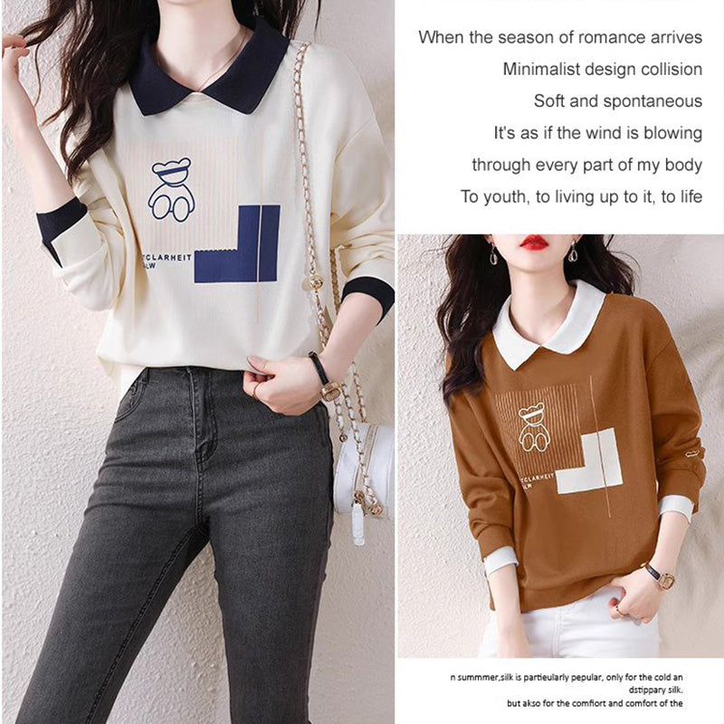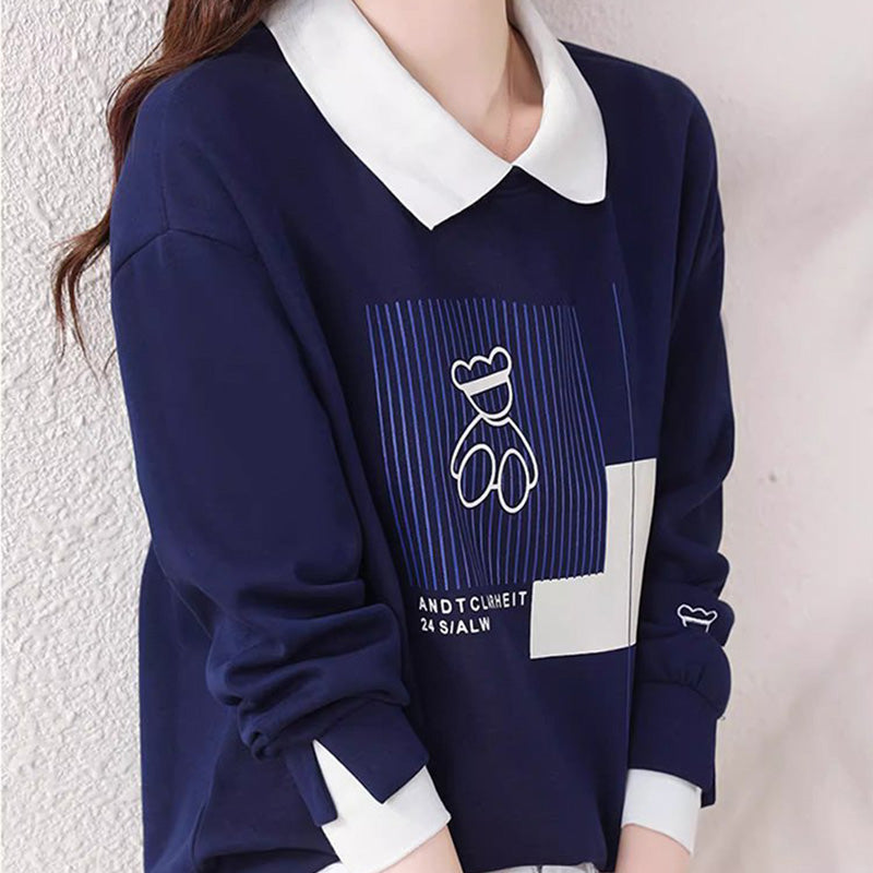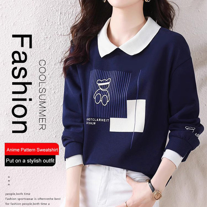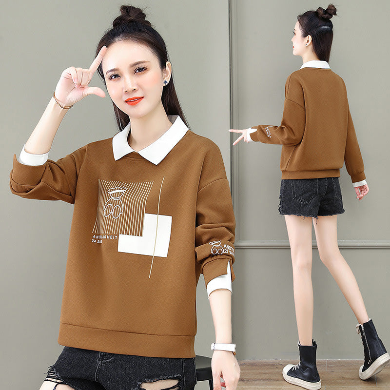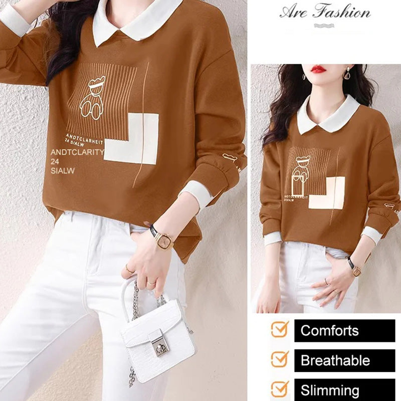 LAYERED LOOK - The mock two-piece design mimics the look of a collared shirt or blouse peeking out from underneath the sweatshirt, giving the appearance of a layered outfit without the added bulk.