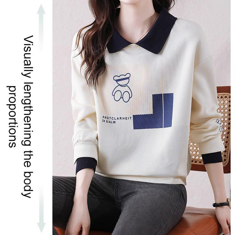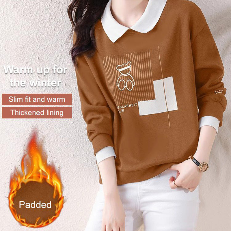 1 * Women’s Plush-Lined Sweatshirt with Cute Bear Print