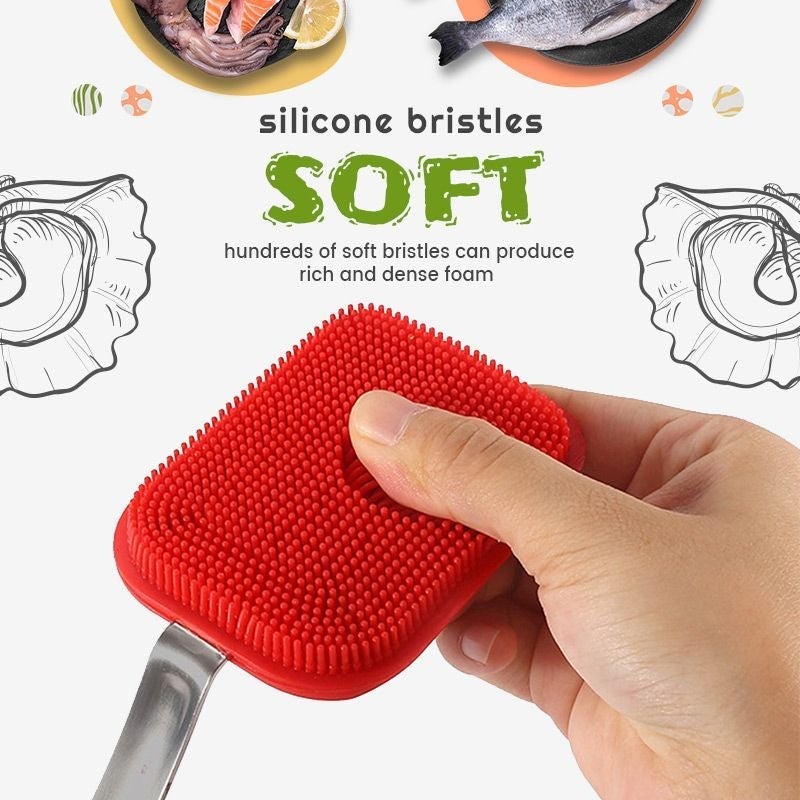 The soft silicone bristles are environmentally friendly and without leaving any harmful residues on the kitchenware. It does not scratch, absorb residue, has an unpleasant odor, and accumulate bacteria.