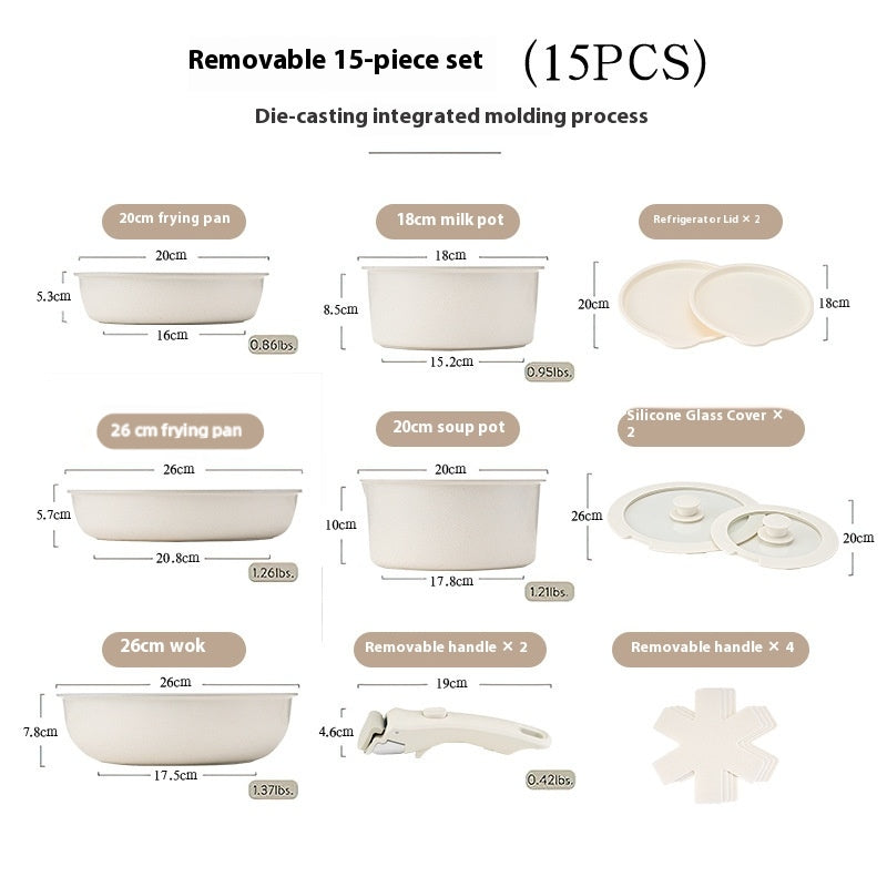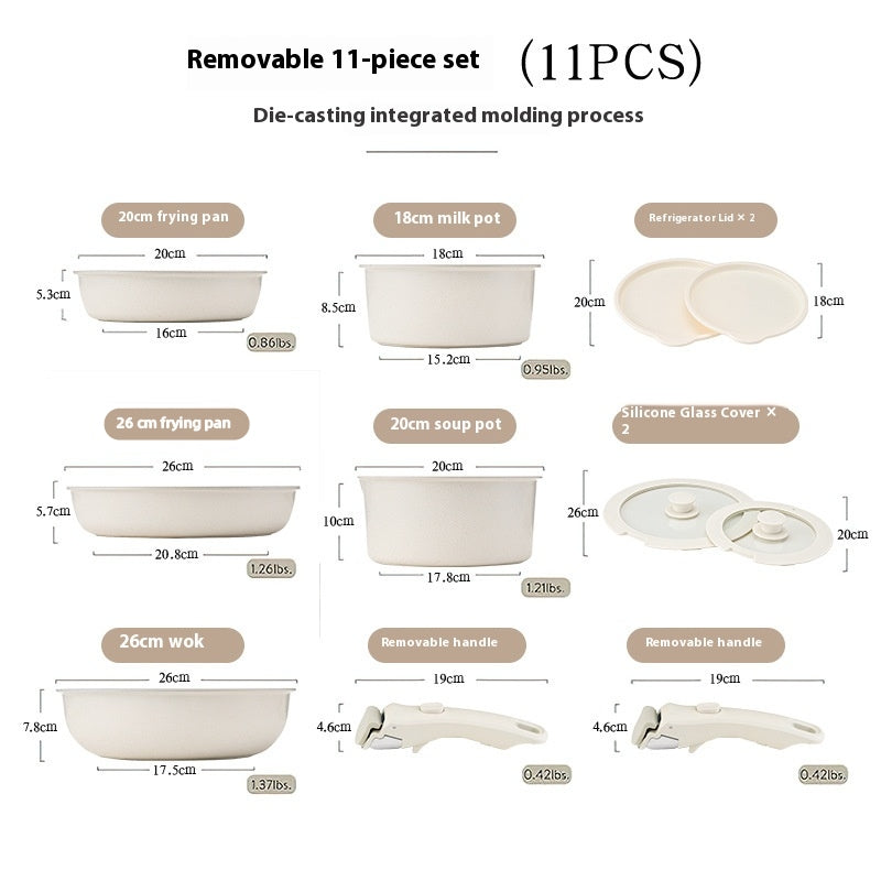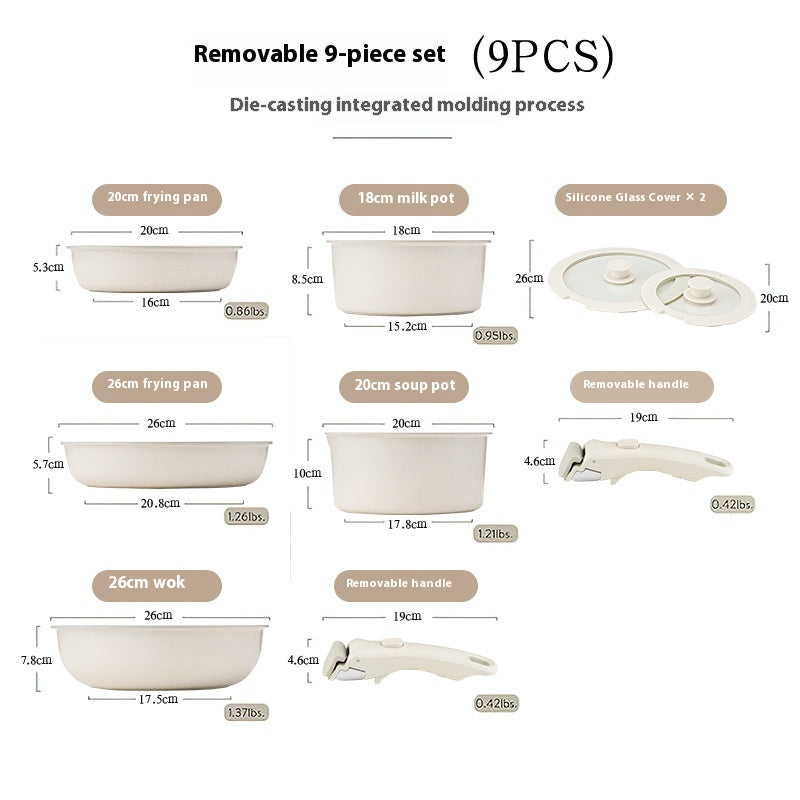 Package Includes: 1 * Non-stick Cookware Set with Removable Handle