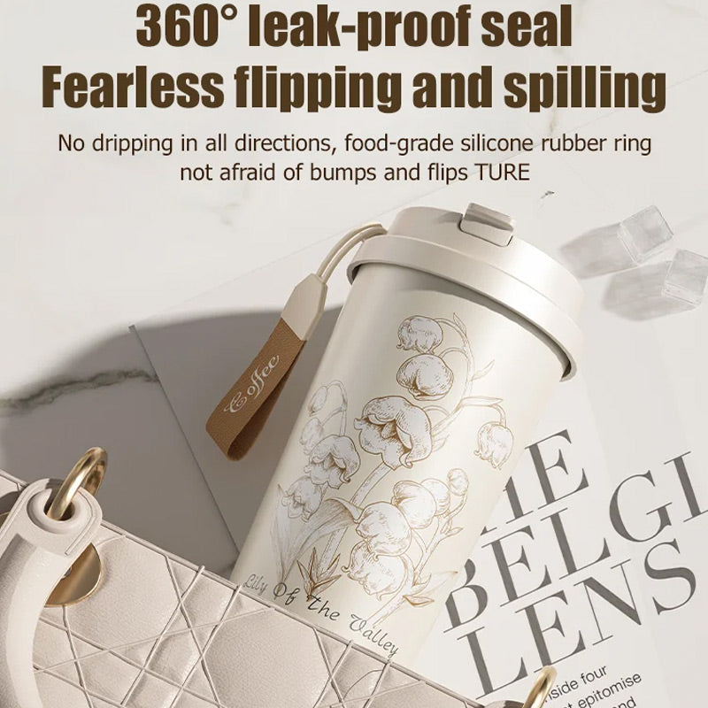 LEAK-PROOF : The secure, leak-proof lid ensures that you can carry your cup in your bag without worrying about spills or leaks. Perfect for commuting, traveling, or everyday use.