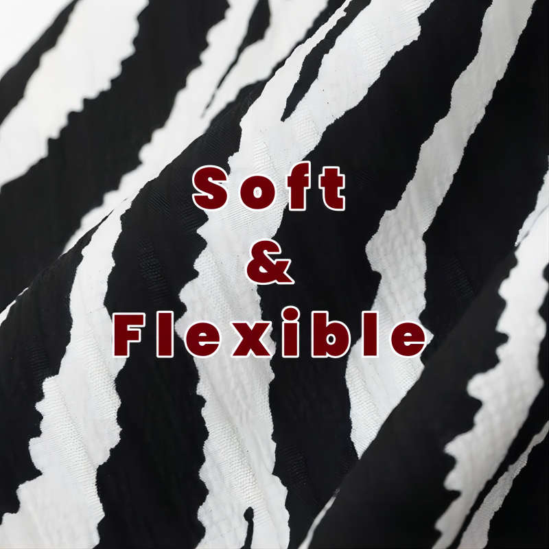 STYLISH PATCHWORK PRINT: Showcases a delightful patchwork of classic black and bold zebra print patterns, blending timeless elegance with a touch of modern flair.