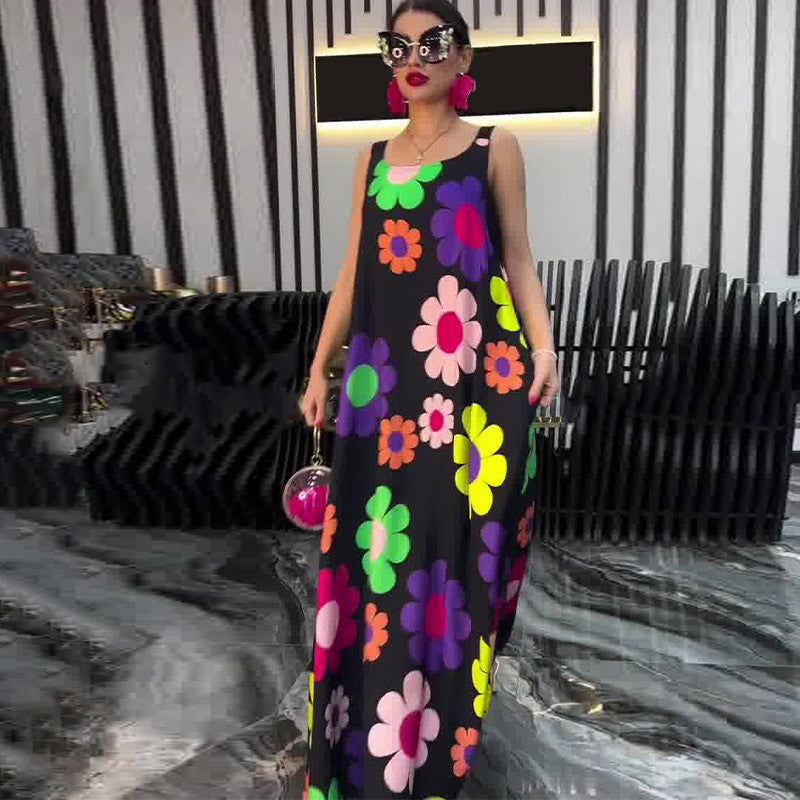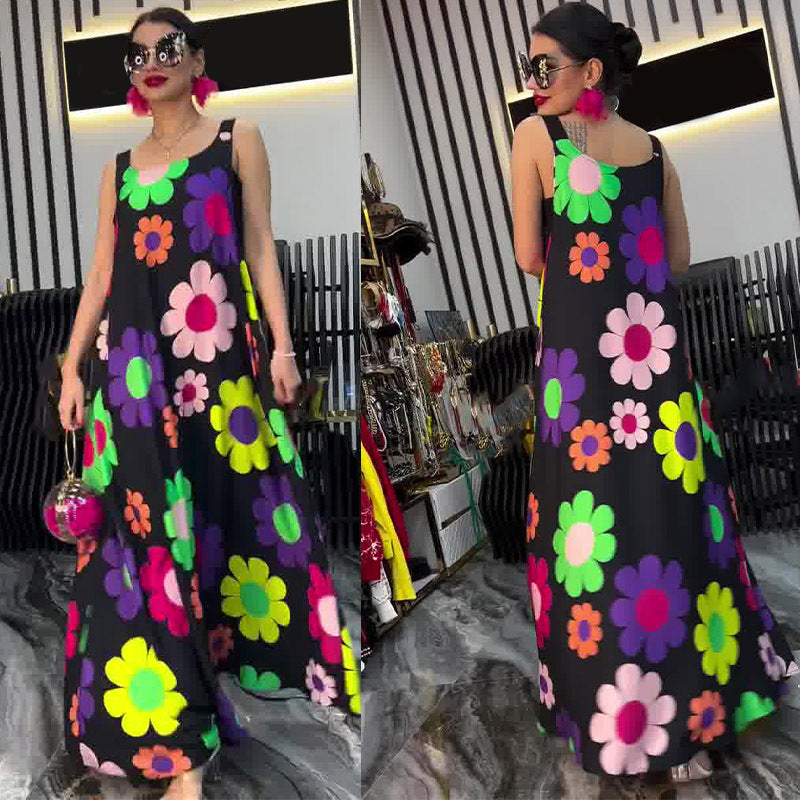 Floral Printed Loose Sleeveless Ankle-Length Dress