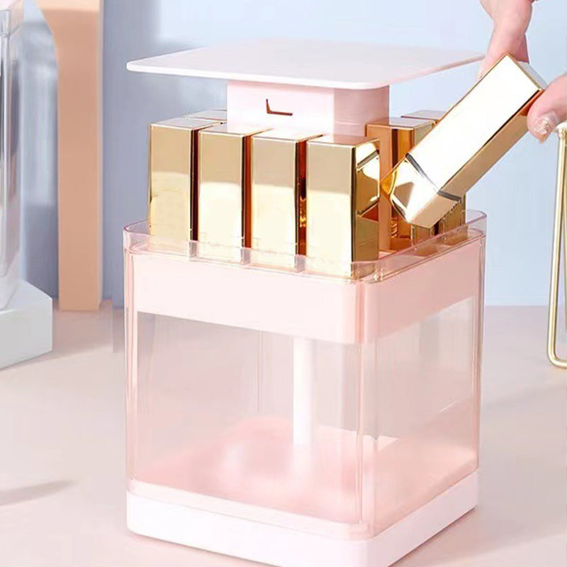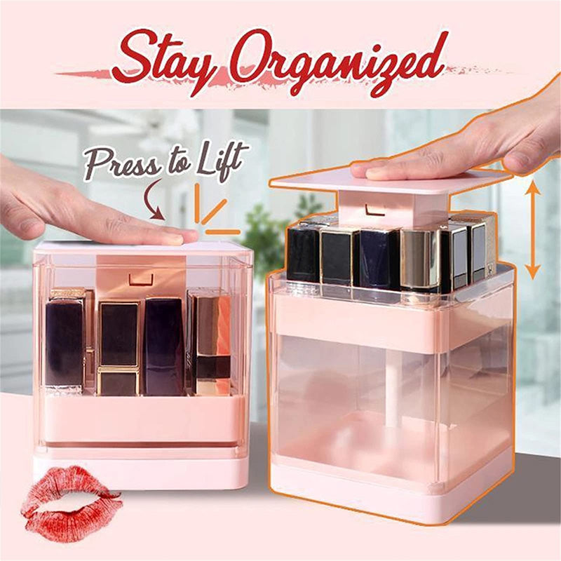 ONE-TOUCH LIFT-UP: It features a lift-up mechanism that raises your lipsticks with a single press. No need to search around; simply press down, and your cosmetics smoothly elevate for quick and easy access.