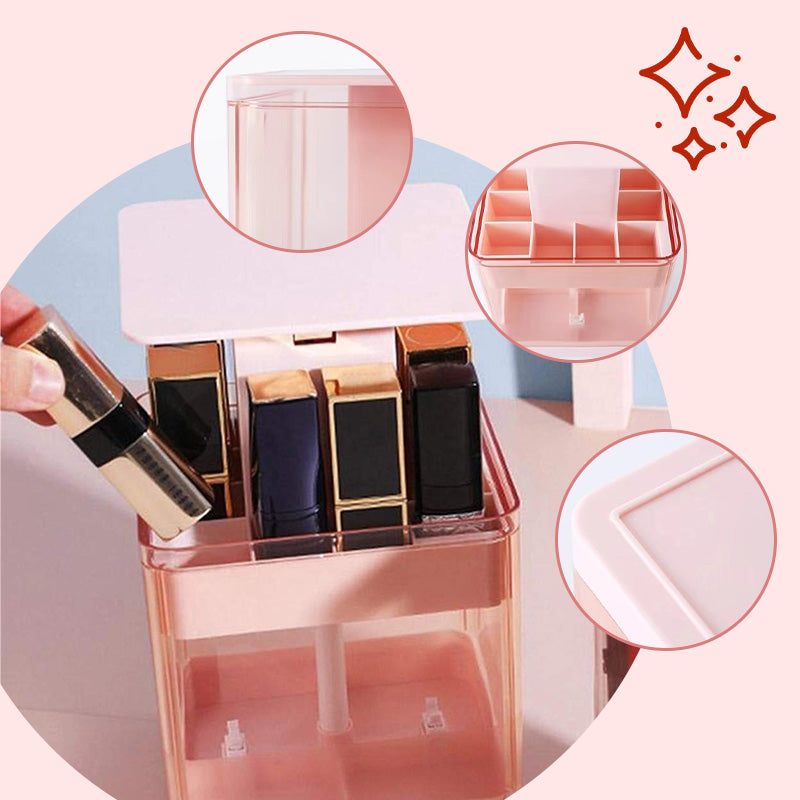 DUSTPROOF: Designed with a secure, dustproof cover, this organizer keeps your lipsticks and cosmetics shielded from dust, dirt, and small pests. The airtight seal ensures that even items not used frequently stay fresh and clean.