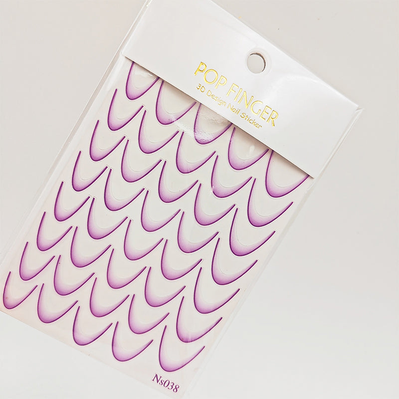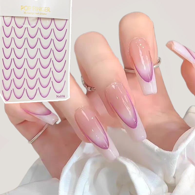 Package includes: 1 or 9 * Minimalist Gradient 3D Arc-Moon Nail Art Sticker