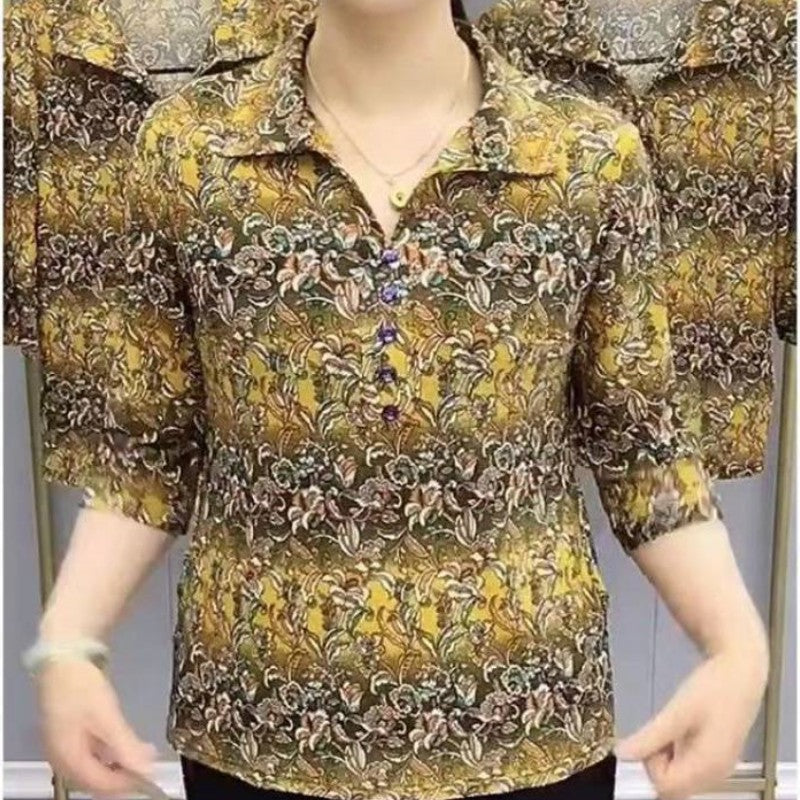 The Women's Casual Printed Lapel Shirt combines comfort and style. Made from breathable and skin-friendly fabric, it features a lapel collar, 3/4 sleeves, and vibrant prints. Perfect for spring and summer.