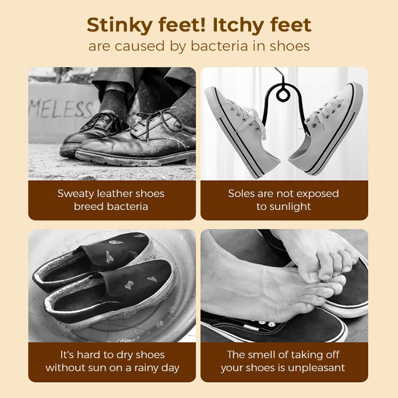 【ELIMINATE PARADISE AND FOOT】Optimal heat circulation effectively eliminates moisture, sweat and odor from shoes, while UV sterilization protects foot health.