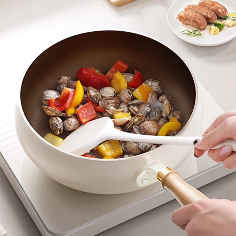 To protect the non-stick coating, please use silicone, nylon, or wooden utensils and avoid sharp metal objects.