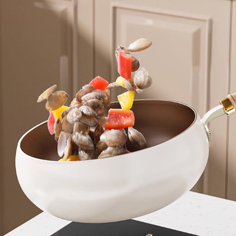 LARGE CAPACITY DEEP DESIGN: The unique high-walled, deep-body shape provides ample space for large meals and effectively contains splatters, keeping your stovetop cleaner and making stir-frying mess-free and more convenient.