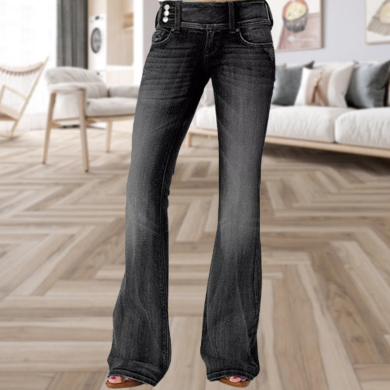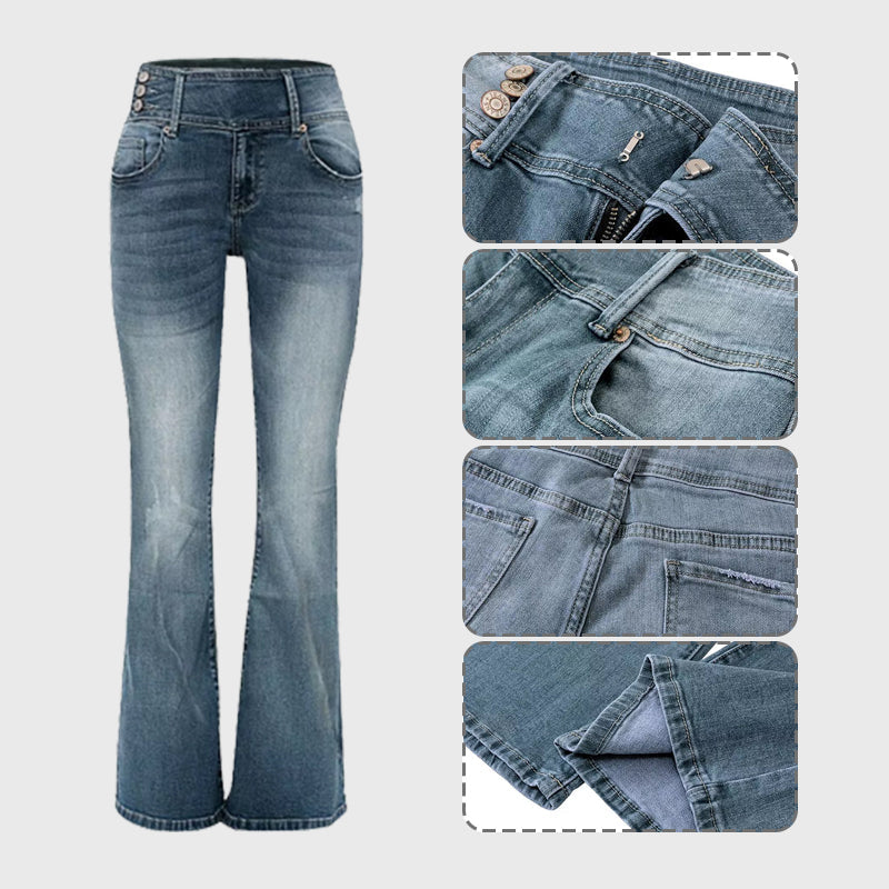 Vintage Side Buttons Mid-rise Bell Bottom Jeans