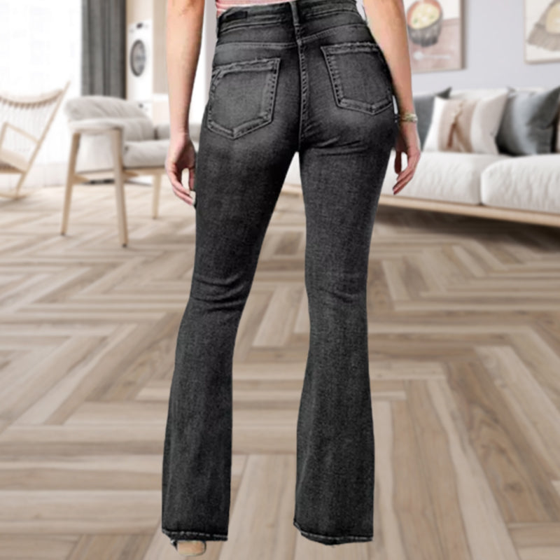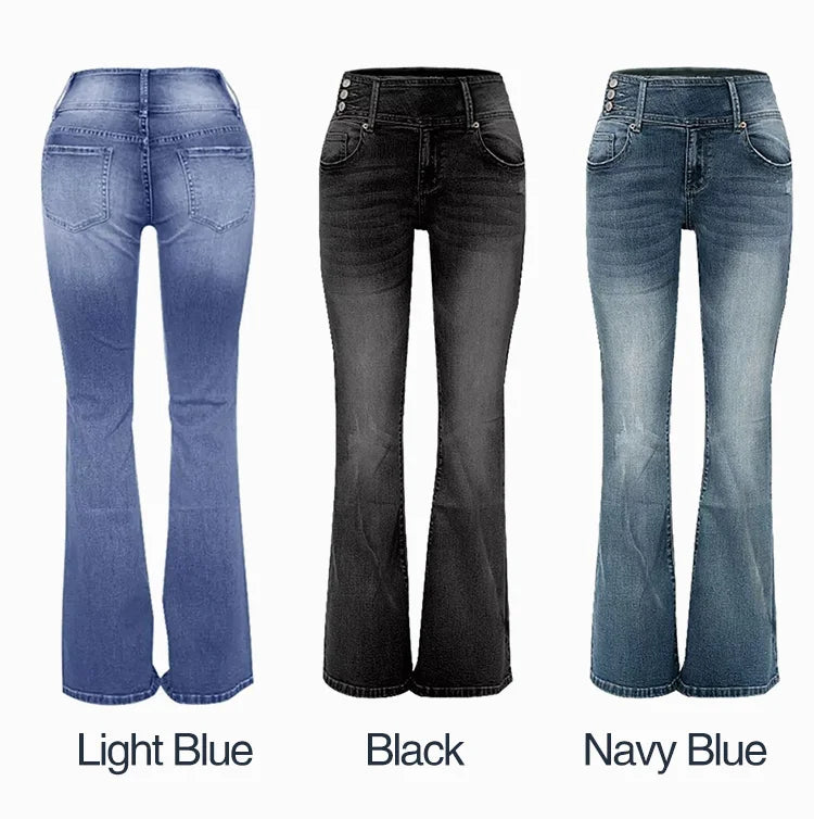 Highlight Your Figure - Bell Bottom Jeans with a big horn that covers the whole shoe. The mid waist design enhances your waist line. The buttock lifting design accentuate the curve of the buttock. The whole body will highlight your attractive figure.