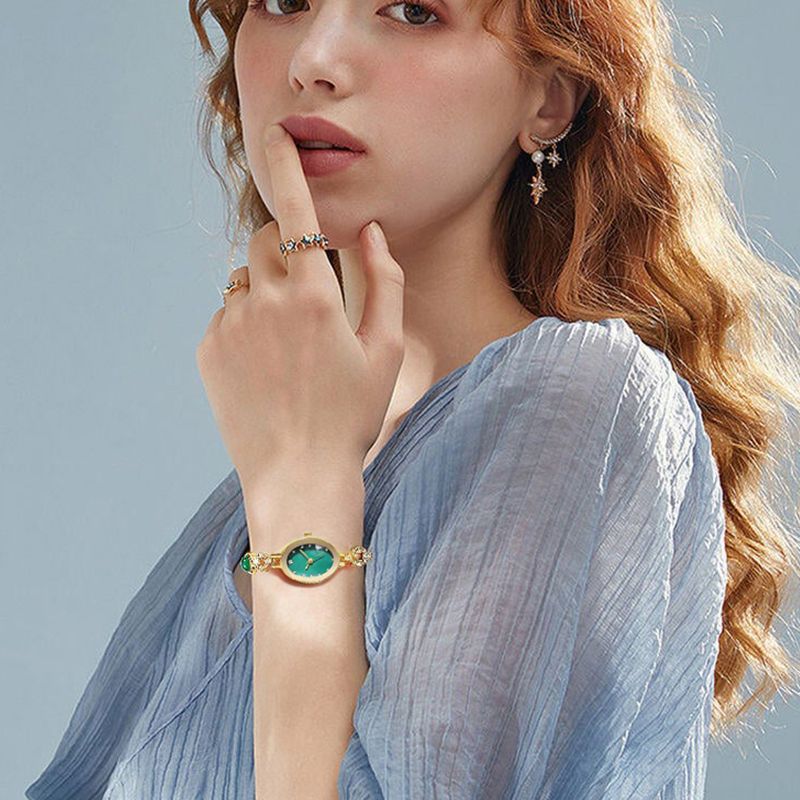 This emerald bracelet watch is more stylish and elegant than normal watches. The delicate watchband and stylish green dial will add more charm to your wrist.