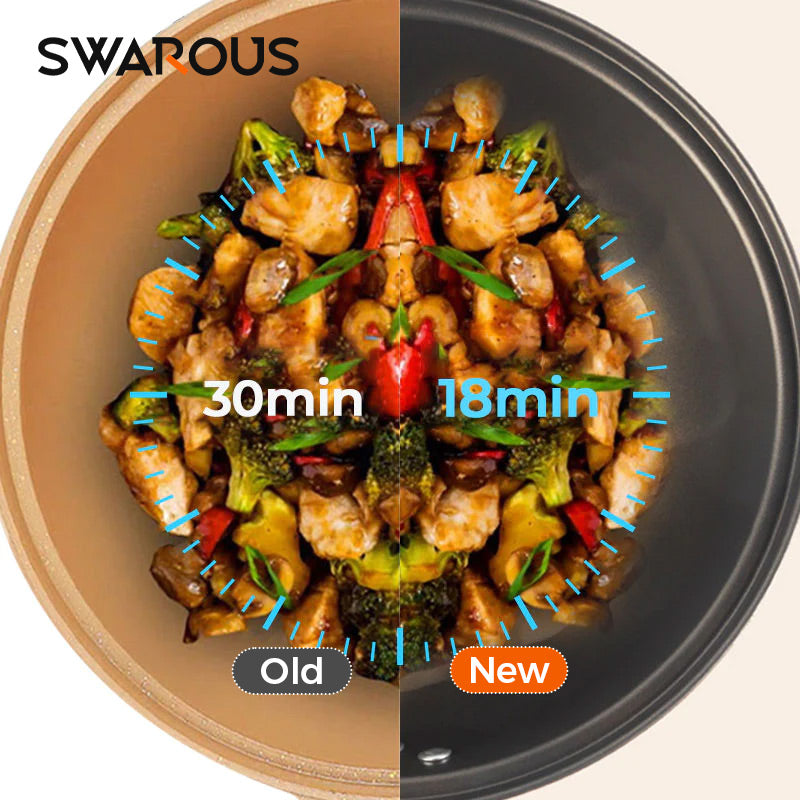 Micro-Pressure Technology: Our wok features innovative micro-pressure technology that creates a sealed cooking environment.This advanced feature allows you to cook food faster and more evenly, retaining essential nutrients and flavors.Say goodbye to overcooked or unevenly cooked meals with this precision cooking method.